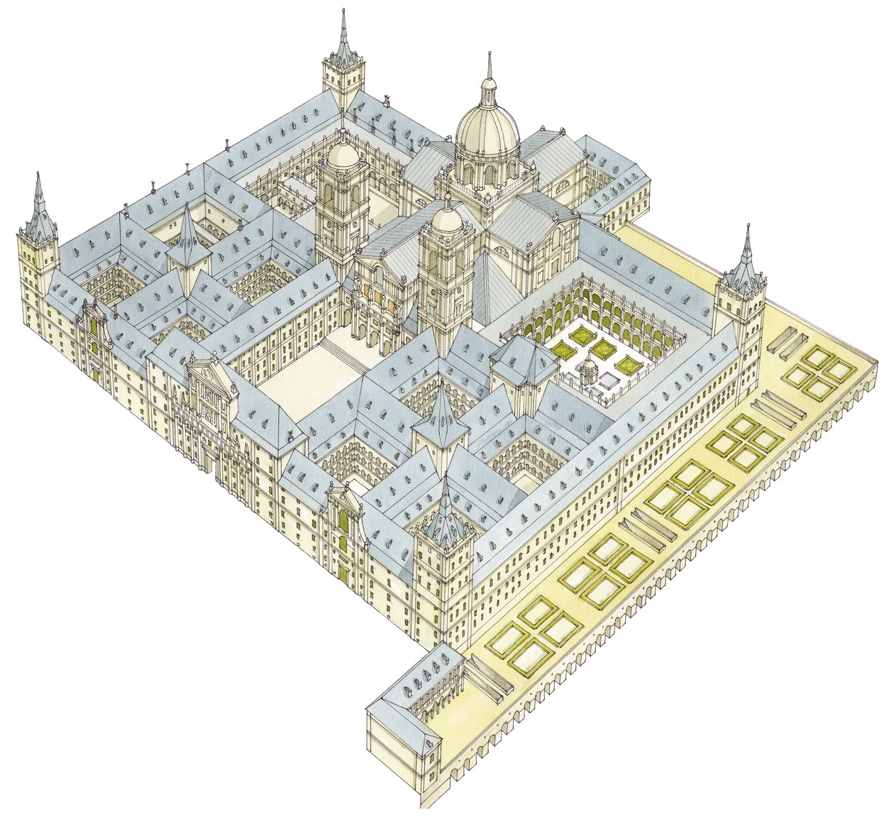 escorial · kloster · spanien · juan de herrera · palast · kirche · renaissance-stil · architektur · gebäude · malerei · illustration · balstudio · aquarell · Private Collection / Bridgeman Images |