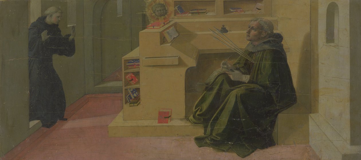 St. Augustinus in seinem Studierzimmer (Predella des Barbadori-Altarbildes)(St. Augustine in his Study (predella of the Barbadori Altarpiece))Fra Filippo Lippi |