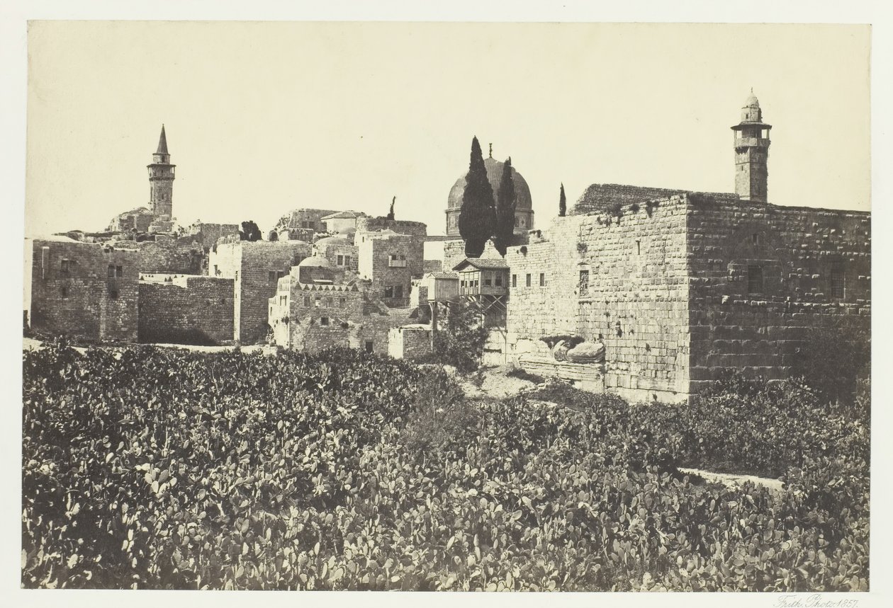 spielraum · natur · art institute chicago · außen · draußen · stadt · gebäude · fromm · architektur · wand · wände · moschee · stadt · betrieb · betriebe · künste · mittler-osten · land · religion · kunst · britisch · kaktus · kakteen · jerusalem · israel · ruinen · fotographie · archäologie · ruine · islam · islamisch · schrein · haube des felsens · walled stadt · position · jahrhundert · archäologisch · galerie · großbritannien · ruiniert · archäologischer aufstellungsort · archäologie · touristische anziehung · kunstgalerie · moschee von omar · palästina · stachelige birne · 19. jahrhundert · schwarzes u. weiß · schwarzes und weiß · stadt-wände · albumendruck · 19.jahrhundert · stachelige birnen · tourismus · photograph · landscape · francis frith · f frith · art institute of chicago · frith · francis · art centre · town wall · f frith co · heritage art · albumen silver print · 19th-century · Heritage Art/Heritage Images