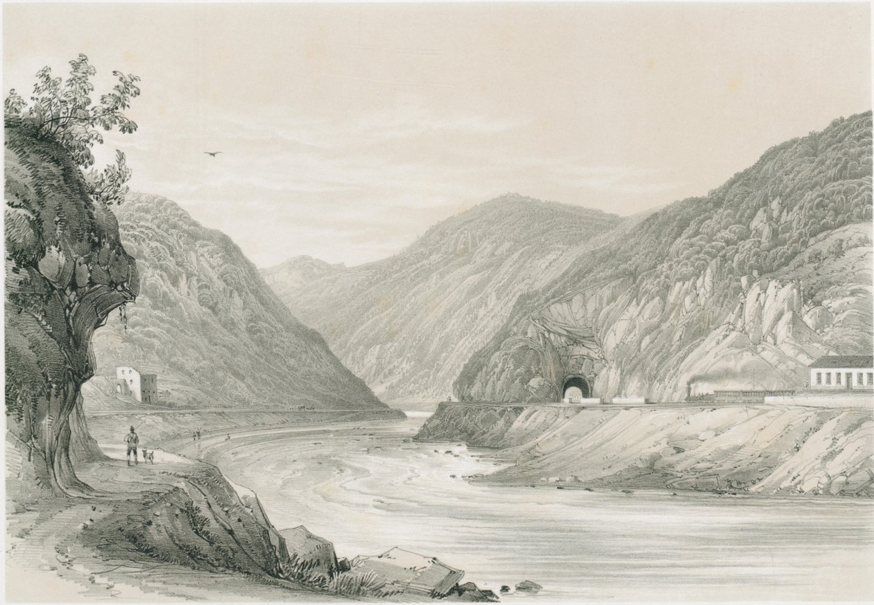 landschaft · natur · bäume · haus · tunnel · berge · wasser · vogel · person · malerische · ansichten · andenken · eröffnung · bahnstrecke · cilli · Laibach |