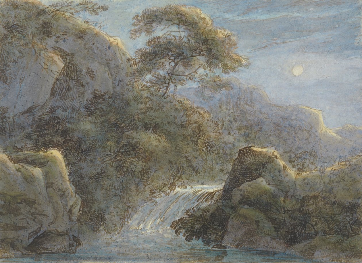 Wasserfall in den Bergen bei Mondlicht(Waterfall in the Mountains by Moonlight)Franz Innocenz Kobell |