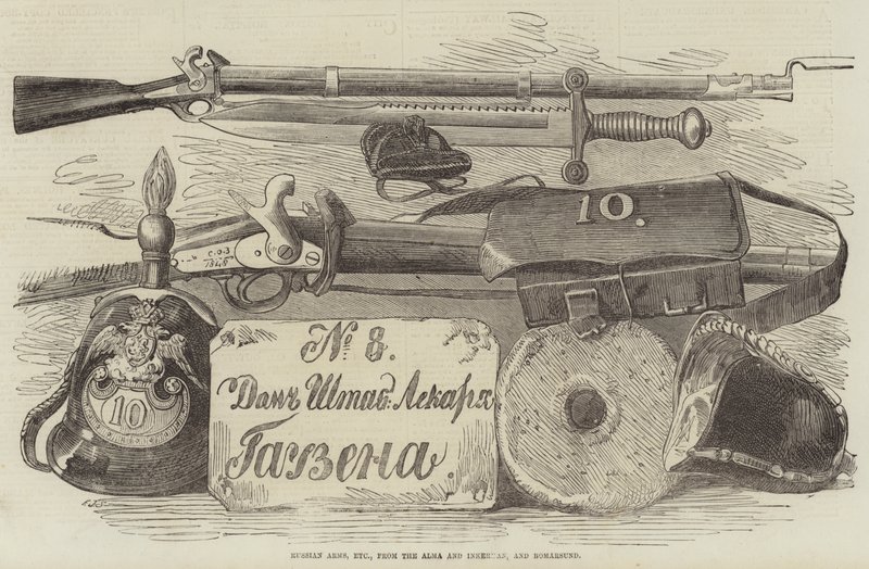 russische waffen · alma · inkerman · bomarsund · krim-krieg · waffen · gewehre · messer · Private Collection / Bridgeman Images · / Look and Learn |
