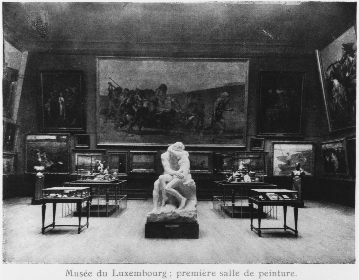 Erster Raum der Gemälde mit dem Kuss von Auguste Rodin, Musée du Luxembourg, Paris, um 1910(First room of paintings with the Kiss by Auguste Rodin, Musee du Luxembourg, Paris, c.1910 )French Photographer |