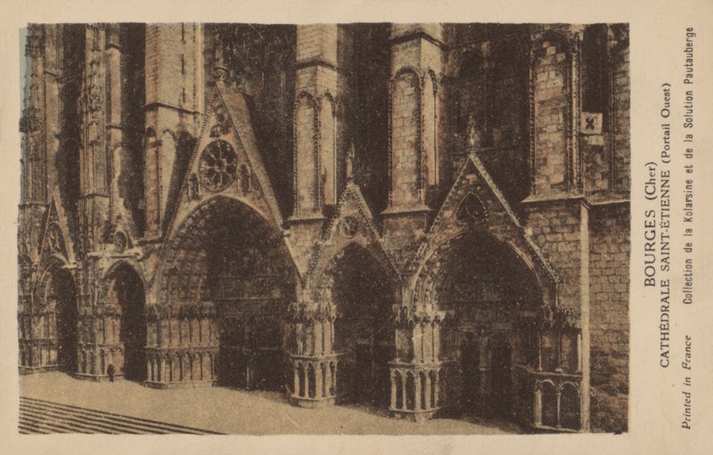 postkarte · postkarten · frankreich · französisch · die architektur · bourges · cher · kathedrale saint-etienne · Private Collection / Bridgeman Images · / Look and Learn |