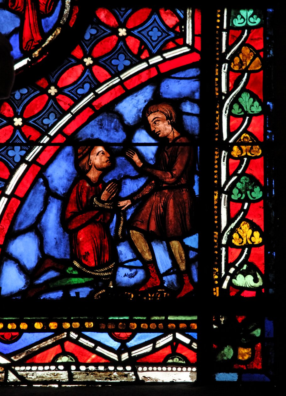 Fenster w05, Darstellung des Magiers Hermogenes und Philetus(Window w05 depicting the magician Hermogenesand Philetus )French School |