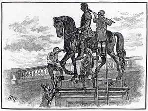 Reiterstatue von Heinrich IV., errichtet auf dem Mittelstreifen der Pont-Neuf, 1614-1635(Statue equestre de Henri IV, erigee sur le terre-plein du Pont-Neuf, 1614-1635 )French School |
