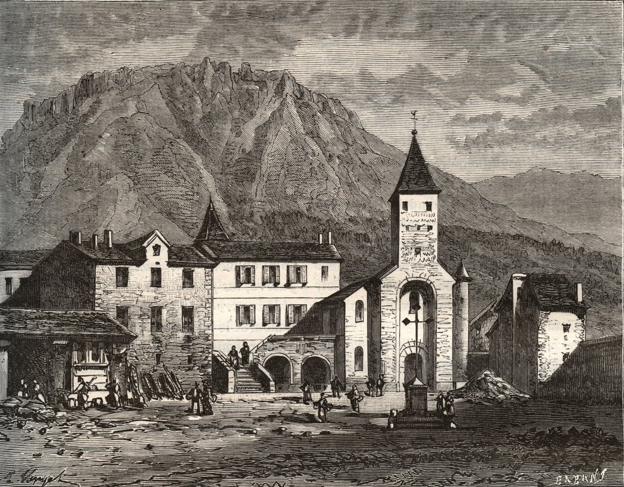 landschaft · kunst · gravur · architektur · französisch · bevölkerung · berg · kirche · französisch · blick auf eine stadt · frankreich · lozère (48) · gebäude · bianchetticor · Private Collection / Bridgeman Images |