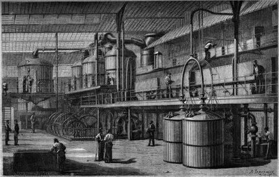 gravur · schwarz und weiß · lebensmittel · gravur · industrielle entwicklung · französisch · fabrik · zucker · industrialisierung · lebensmittel · französisch · instrument · frankreich · industrielle revolution · bianchetticor · 19 · Private Collection / Bridgeman Images