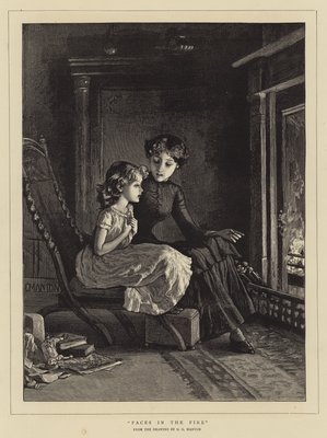 gesichter · feuer · häusliche szenen · kamine · frauen · kinder · mädchen · stühle · Private Collection / Bridgeman Images · / Look and Learn