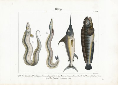 Vielfalt der Meeresfauna: Großer Seenadel, Lumpfisch, Seemotte, Muräne und Zitteraal(Diversity of marine fauna: Greater pipefish, Lumpfish, Sea moth, Moray eel and Electric eel)Georg Bretzing |