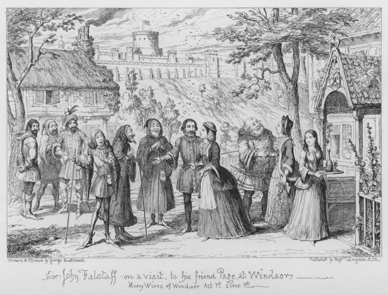 Sir John Falstaff besucht seinen Freund Page in Windsor(Sir John Falstaff on a visit, to his friend Page, at Windsor )George Cruikshank |