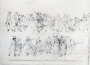Bauarbeiter und Vermesser beim Wiederaufbau des British Museum, 1844(Builders and Surveyors at the rebuilding of the British Museum, 1844 (pencil on paper))George Snr Scharf |