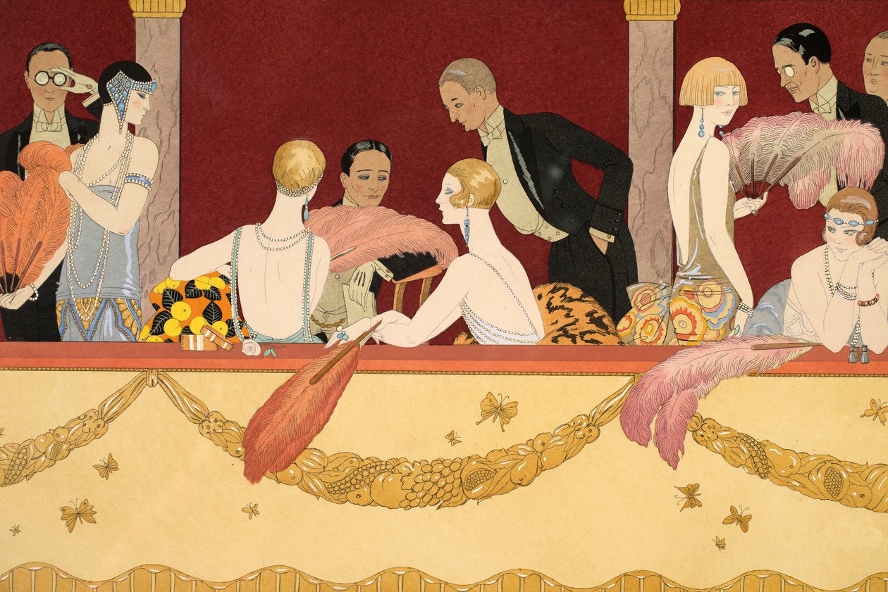 1920er · 20er · zwanziger · 1920-1929 · 1920er · 1920er - 20er - 20er · 20. jahrhundert · 20. jahrhundert · xx jahrhundert · xx. jahrhundert · 20. jahrhundert · c20th · 20 20. xx xx 20. xx xx. jahrhundert · anfang des zwanzigsten jahrhunderts · mitte des 20. jahrhunderts · kunst · kunst · kunstwerke · frankreich · französisch · frankreich französisch · französische überseeische departements und gebiete · französische kultur · barbier georges (1882-1932) · illustrator · oper · operngläser · high society · fächer · säulen · balkon · abendkleid · monokel · feder · straußenfedern · rückenfreies kleid · monokel · federn · art deco · 20er · zwanziger · säule · raffiniert · eventtails · balkone · raffinesse · elegant · eleganz · Fans · Private Collection / Bridgeman Images