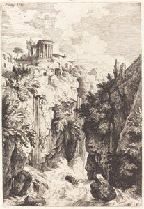 Küstenlinie der Bucht von Neapel von der antiken römischen Stadt Baiae, Kap Miseno, mit Vesuv im Hintergrund(Coastline of the Bay of Naples from the ancient Roman town of Baiae, Cape Miseno, with Vesuvius in the distance (litho))German School |