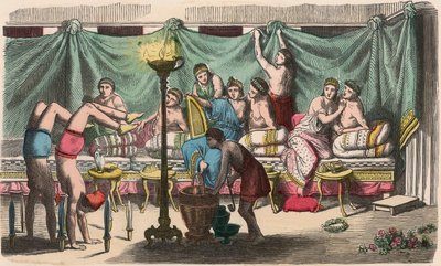 Alte Geschichte. Griechenland. Szene eines Banketts und gymnastische Spiele. ...(Ancient History. Greece. Scene of a banquet and gymnastic games. ... (engraving))German School |