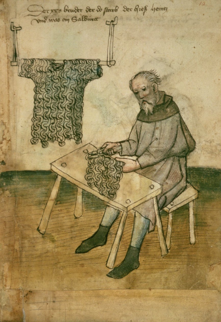 rüstung · mittelalter · kettenhemd · arbeiter · arbeit · handwerker · handel · geschicklichkeit · Stadtbibliothek, Nuremberg, Germany / Bridgeman Images |