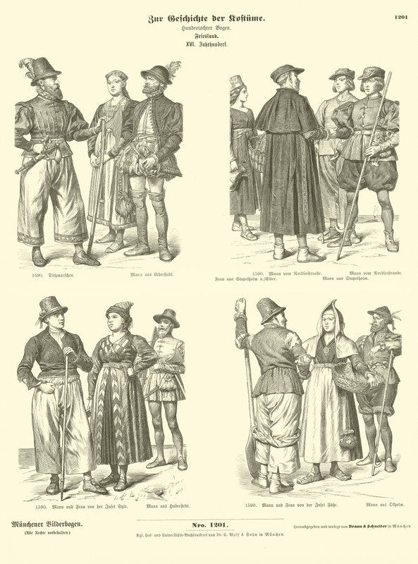 Friesische Kostüme, 16. Jahrhundert(Frisian costumes, 16th Century )German School |
