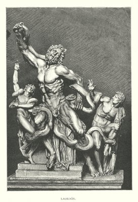 Laokoon und seine Söhne, antike griechische oder römische Skulptur, 1506 in Rom ausgegraben (Gravur)(Laocoon and His Sons, ancient Greek or Roman sculpture excavated in Rome in 1506 (engraving))German School |