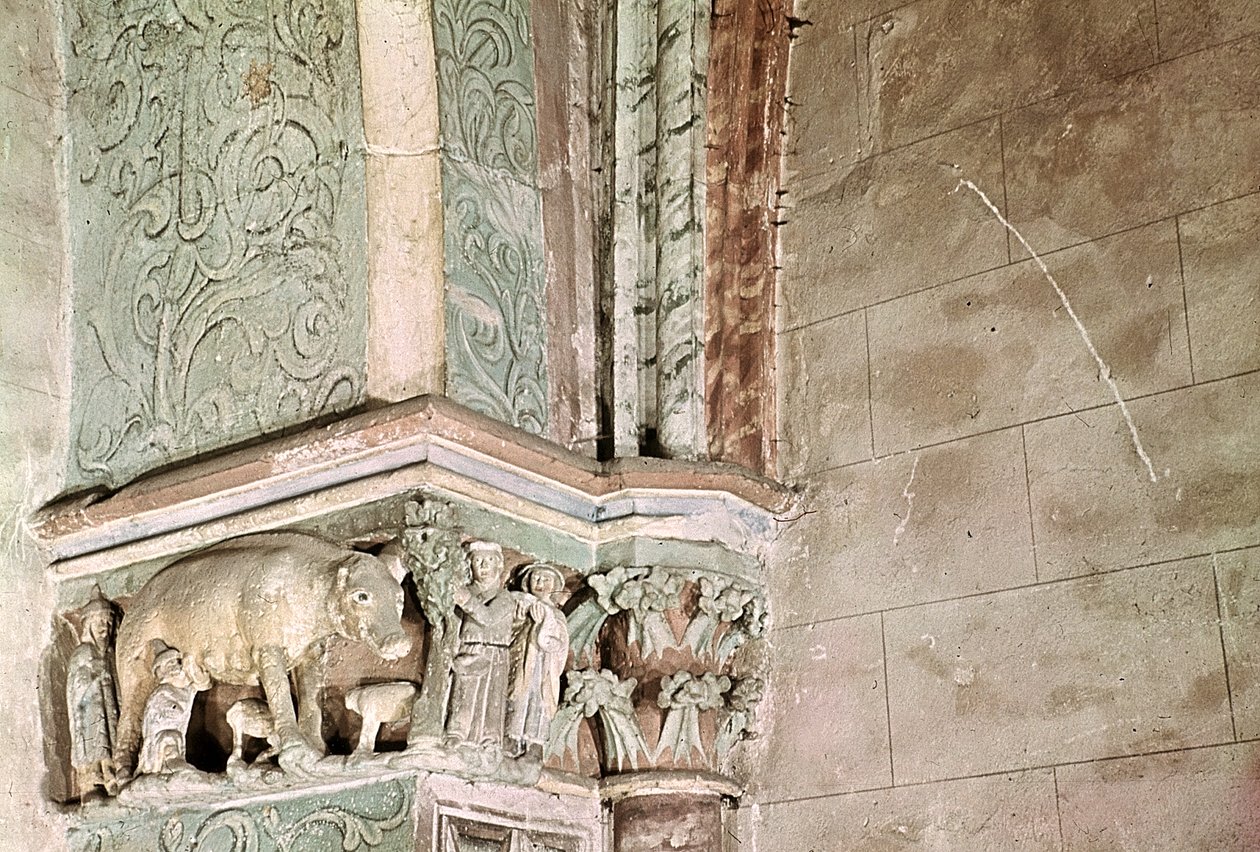 Kapital, das die Judensau darstellt, um 1301-25(Capital depicting the Judensau, c.1301-25 (stone))German School |