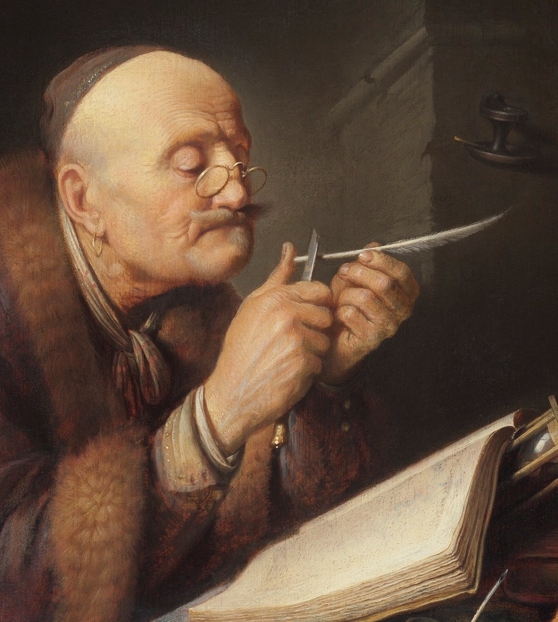 Gelehrter, der seine Feder spitzt(Scholar Sharpening His Quill )Gerrit Dou |