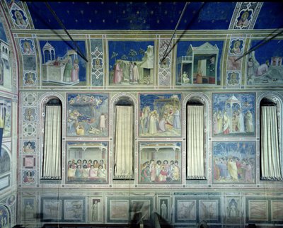 Ansicht der Fresken an der linken Wand, ca. 1303-05 (Fresko) (nach der Restaurierung)(View of the frescoes on the left wall, c.1303-05 (fresco) (post-restoration))Giotto (c.1266-1337) |