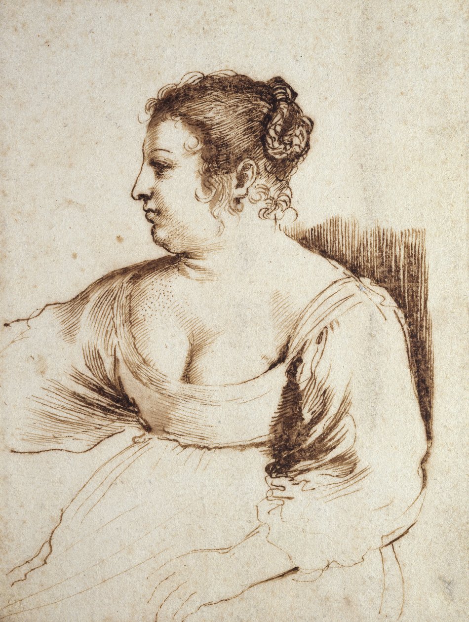 westernart · frau · sitzend · weiblich · zeichnung · studie · skizzieren · profil · halbe länge · barock · Ashmolean Museum, University of Oxford, UK / Bridgeman Images