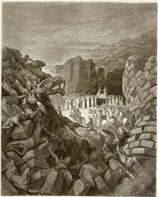 Bibel: Der Fall der Mauern von Jericho. Gravur von Gustave Doré, um 1860.(Bible: The fall of the walls of Jericho. Engraving by Gustave Dore, about 1860.)Gustave Dore |