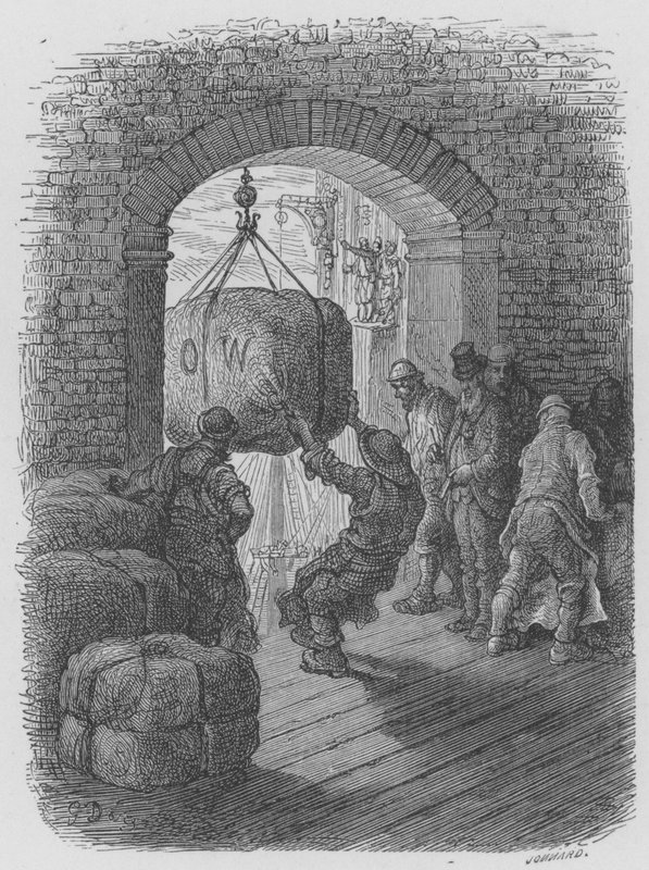 neunzehnten jahrhunderts · docks · dock · manuelle · späten viktorianischen · handel · arbeit · england · 19. jahrhundert · großbritannien · waren · london · arbeit · riemenscheiben · au travail · Private Collection / Bridgeman Images · / Look and Learn