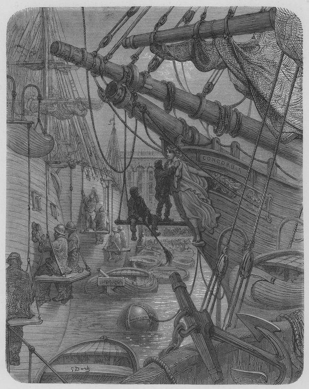 Das Schiff Concordia, in einem Dockbecken(Le Vaisseau Concordia, Dans Un Bassin Des Docks )Gustave after Dore |