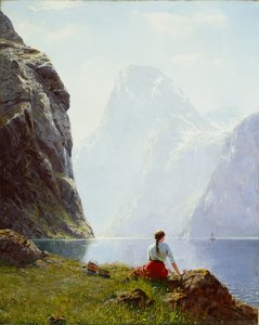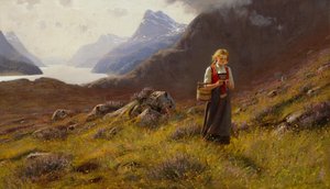 Stricken in einer norwegischen Landschaft(Knitting in a Norwegian Landscape)Hans Dahl |