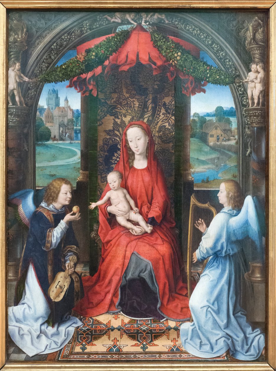Madonna und Kind auf dem Thron mit Engeln(Madonna and Child enthroned with angels)Hans Memling |