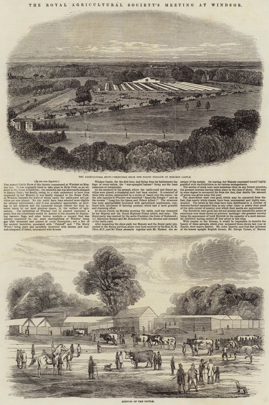 royal agricultural society · treffen · windsor · landwirtschaftsausstellung · skizziert · nordterrasse · schloss windsor · ankunft · das vieh · berkshire · topographie · Private Collection / Bridgeman Images · / Look and Learn |