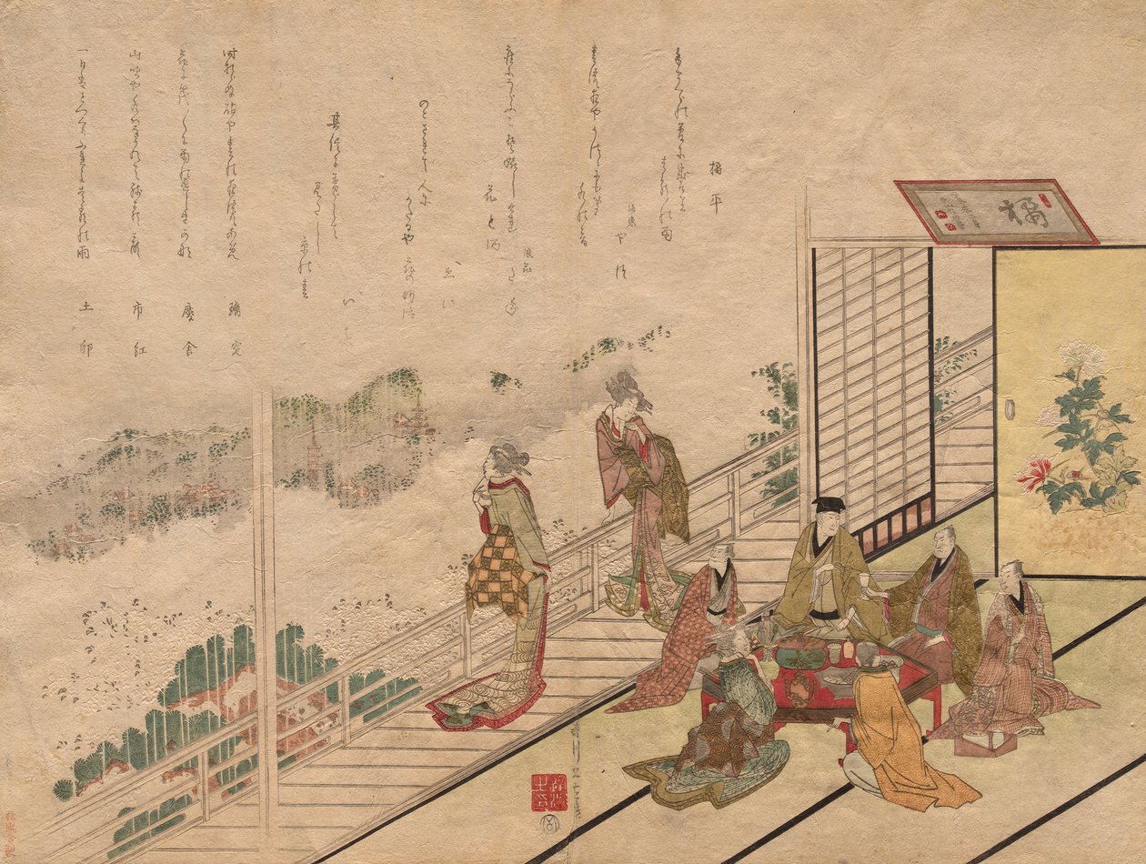Undatiert · Surimono, double o?-ban; polychrome woodblock print with brass and silver pigment and gauffrage