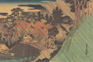 wetter · fluß · land · brücke · brücken · regnen · regen · museum · geographie · farbe · struktur · japan · japanisch · steg · position · jahrhundert · druck · farbe · getroffen · metropolitanmuseum der kunst · das metropolitanmuseum der kunst · 19. jahrhundert · 19.jahrhundert · bäume · landscape · hasegawa sadanobu · sadanobu · hasegawa · hasegawa sadanobu i · heritage art · polychrome woodblock print · ink and color on paper · 19th-century · Heritage Art/Heritage Images