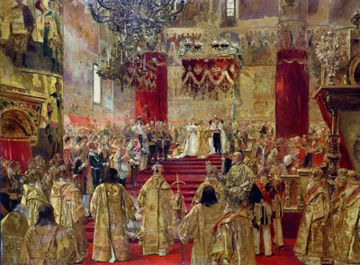 Die Krönung von Zar Nikolaus II. und Kaiserin Alexandra Feodorowna in der Mariä-Entschlafens-Kathedrale, Moskau(The coronation of Czar Nicolas II and Empress Alexandra Feodorowna in the Church of the Assumption, Moscow (painting on canvas))Henri Gervex |
