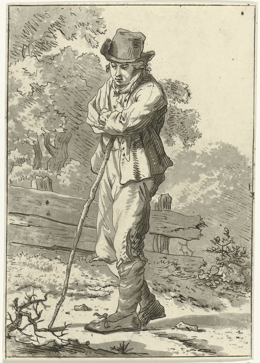 Mann, der sich auf einen Stock lehnt(Man leunend op stok)Hermanus Fock(print maker) |