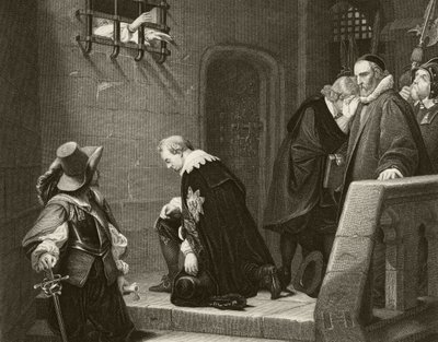 c17th · royalist · kniend · hände · gefängnis · aristokratie · erzbischof · verurteilt · politiker · segen · männlich · glaube · bars · lord deputy of ireland · Private Collection / Bridgeman Images