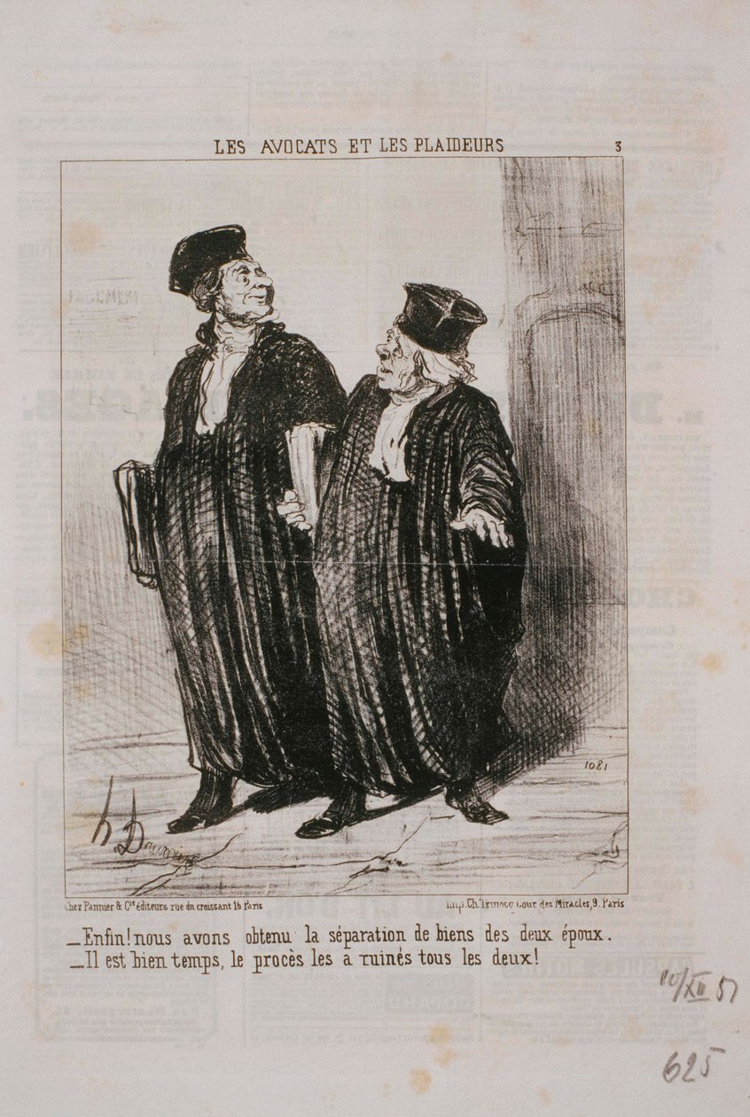 Die Anwälte und die Kläger- Endlich! Wir haben die Gütertrennung erreicht...(Les Avocats et Les Plaideurs- Enfin! Nous avons obtenu la séparation de biens...)Honoré Daumier |