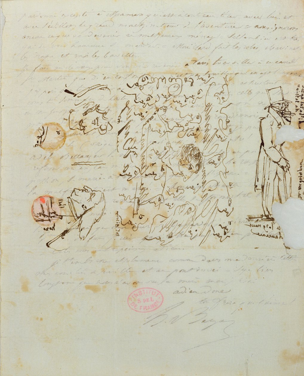 Brief mit Zeichnung an Balzacs Schwester Laure, 1821 (Feder und Tinte auf Papier)(Letter with drawing sent to Balzac's sister Laure, 1821 (pen and ink on paper))Honore de Balzac |