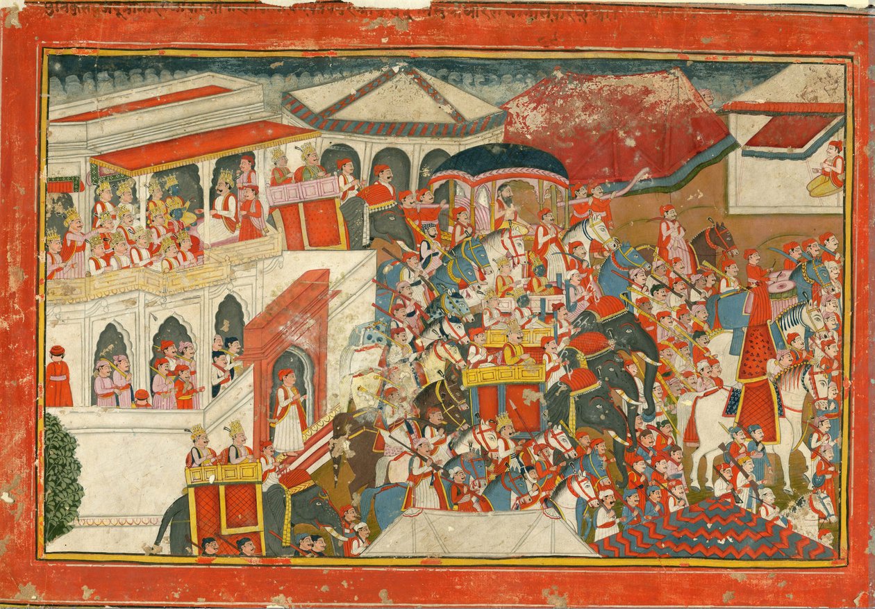 kunst · zeichnen · zeichnen · asien-asien · indien-indianer · kultur · viele menschen · tier · pferd · außenansicht · denkmal · architektur · palast · religion · hinduismus · mythologie · mythologische figur · elefant · Private Collection / Bridgeman Images