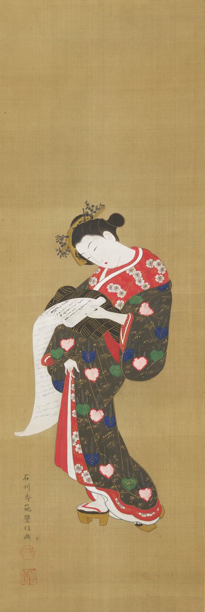 Junge Frau liest eine Schriftrolle(Young woman reading a scroll)Ishikawa Toyonobu |