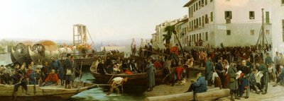 Die Landung der Jäger der Alpen in Sesto Calende im Jahr 1848(The landing of the Hunters of the Alps in Sesto Calende in 1848)Italian School |