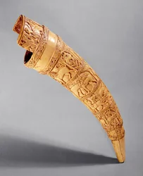 horn · stoßzahn · geschnitzt · musikinstrument · tier · löwe · mittelalter · Musee Paul Dupuy, Toulouse, France / Bridgeman Images