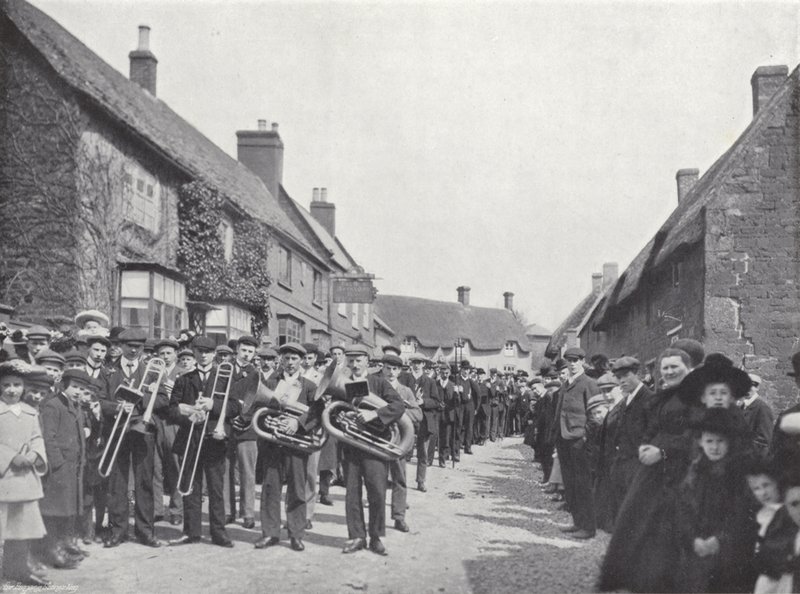 england · englisch · zoll · menschen · hallaton hare pie festival · prozession · messing · band · Private Collection / Bridgeman Images · / Look and Learn |