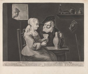 Junge Frau bietet einem Mann ein Glas Wein an(Jonge vrouw biedt een man een glas wijn aan)Jacob Ernst Marcus(print maker),Jacob Ernst Marcus(after drawing by),Jan Havicksz. Steen(after painting by) |