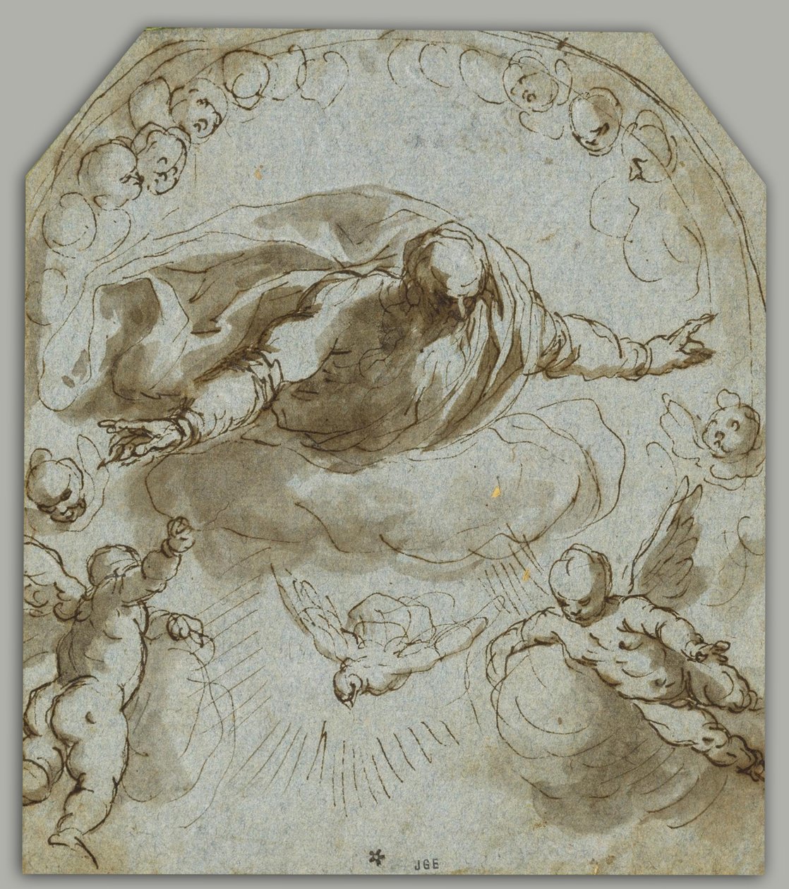 Gottvater mit der Taube, zwei Putti und einem Nimbus aus Cherubim(God the Father with the Dove, Two Putti and a Nimbus of Cherubim)Jacopo Negretti |