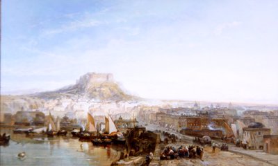 boot · boote · schlepper · transport · burg · schlösser · wohnung · wohnungen · unterkunft · küste · küste · küste · küste · meer · seefahrt · hafen · festung · stadt · spanien · spanisch · hügel · cartagena · stadt · stadtansicht · hafen · festung · malerei · mzpainting · Private Collection / Bridgeman Images