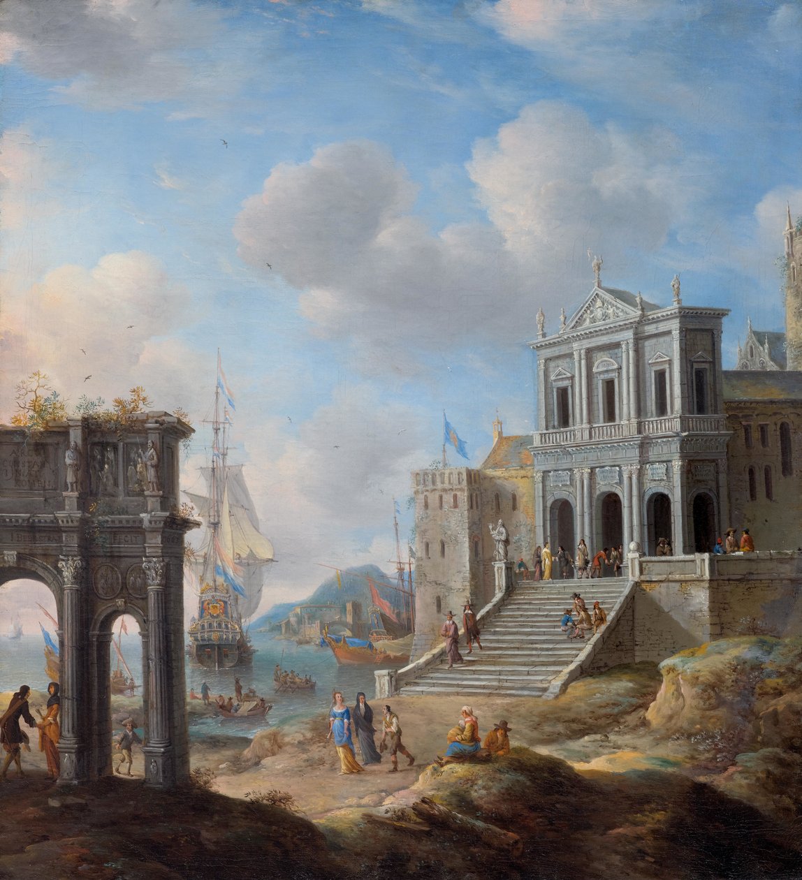 Capriccio mit dem Konstantinsbogen und der Kirche San Gregorio Magno al Celio neben einem Hafen(Capriccio with the Arch of Constantine and the Church of San Gregorio Magno al Celio beside a Harbor)Jan Abrahamsz. Beerstraten |