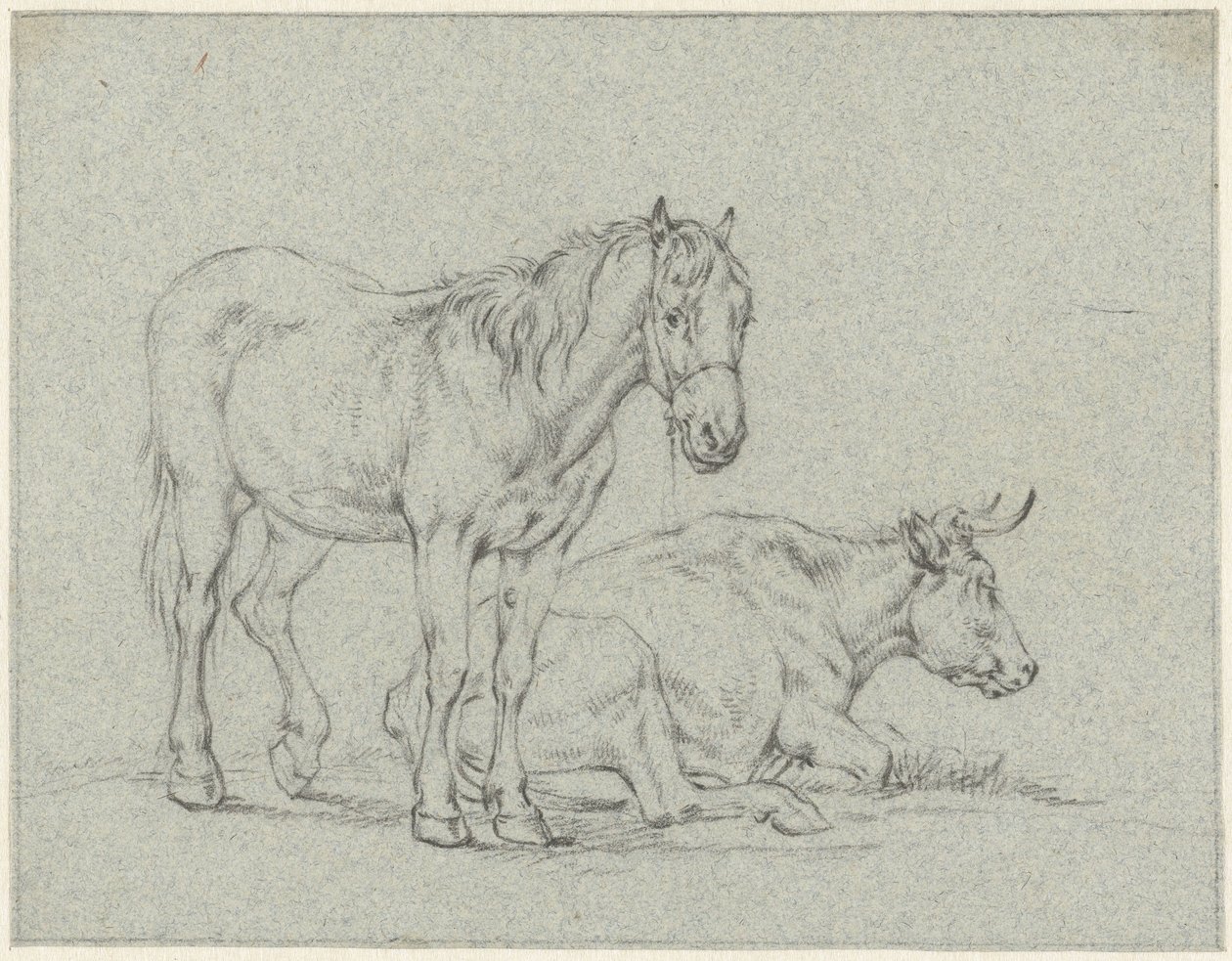 Stehendes Pferd und eine liegende Kuh(Staand paard en een liggende koe)Jan Kobell (II)(draughtsman) |