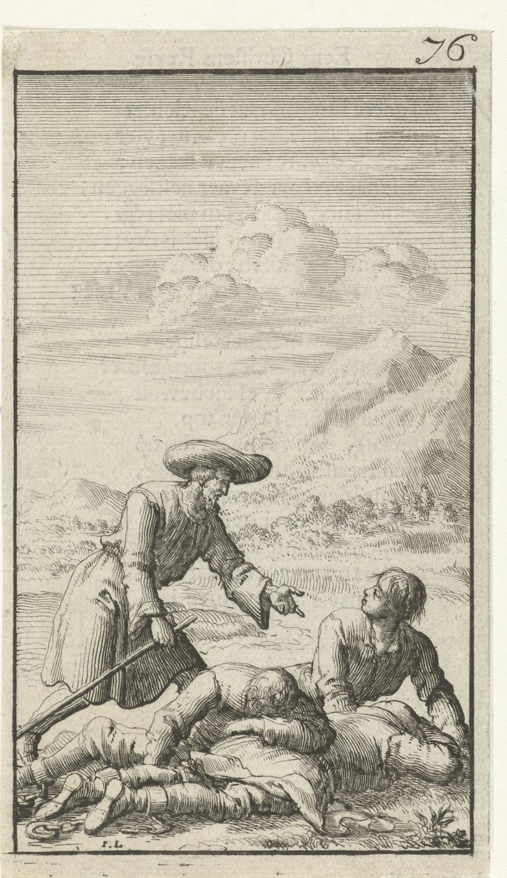 Christen findet Simpel, Faulpelz und Vermessenheit schlafend(Christen vindt Simpel, Luiaard en Vermetel slapend)Jan Luyken(print maker),Johannes Boekholt(publisher) |